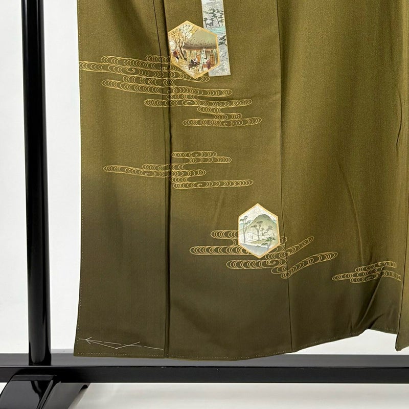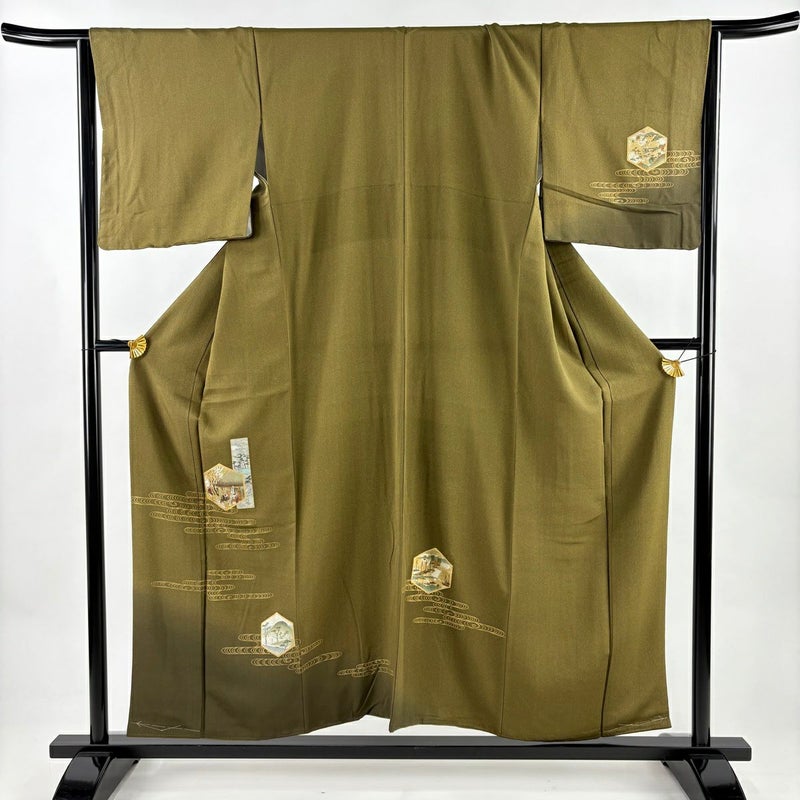 【付下げ】 茶系 茶緑色 秀品 B 約150cm~約159cm 裄丈66cm (M)size 袖丈48cm 4000-7980 二万以下
