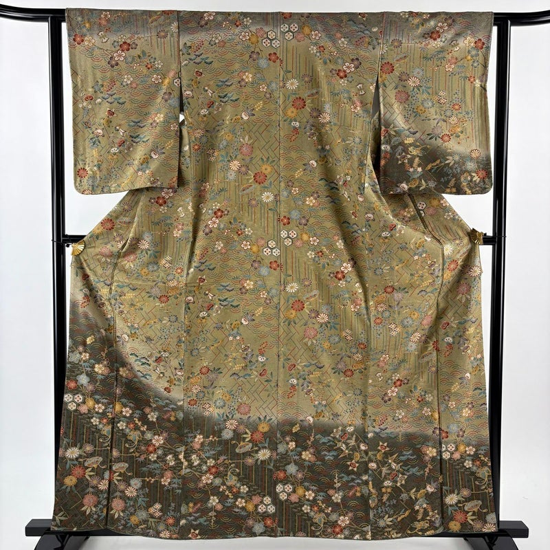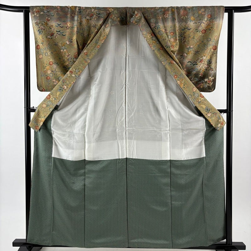 【付下げ】 灰色系 灰緑 秀品 B 約160cm~約169cm 裄丈62cm以下 (S)size 袖丈50cm-60cm -3980 二万以下