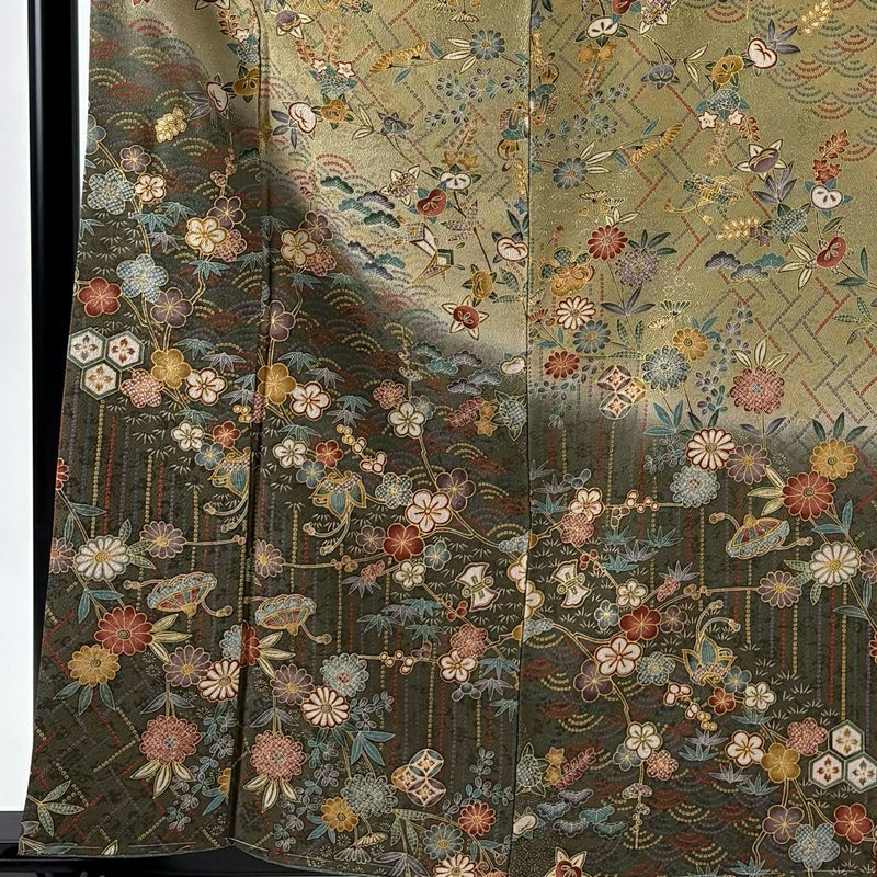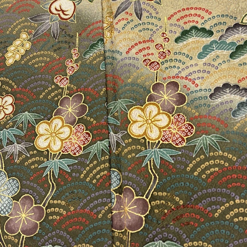 【着物ランク】秀品 【素材】正絹 【身丈】約160.5cm 【裄丈】約61.5cm 【袖丈】約56cm 【袖幅】約31.5cm 【前幅】約23cm 【後幅】約29cm 【サイズ】S 【着物仕立て】袷 【着用時期】10~5月 【状態ランク】ランクB 【着物着用シーン】披露宴、パーティー、式典、食事会、お茶会、正月