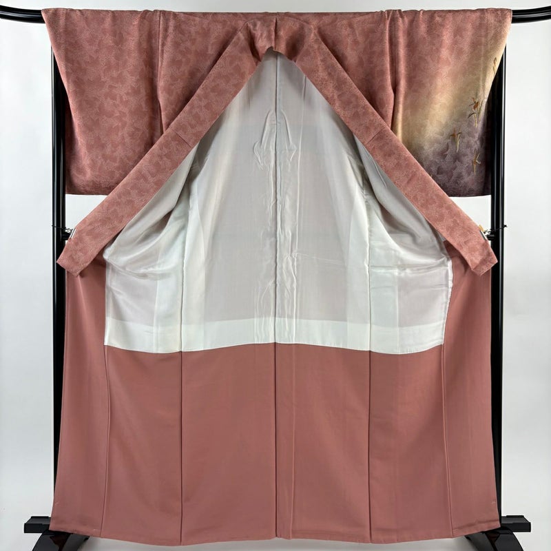 【付下げ】 赤系 ピンクベージュ 名品 A 約160cm~約169cm 裄丈69cm以上 (L)size 袖丈50cm-60cm 9990-29990 美品 二万以下