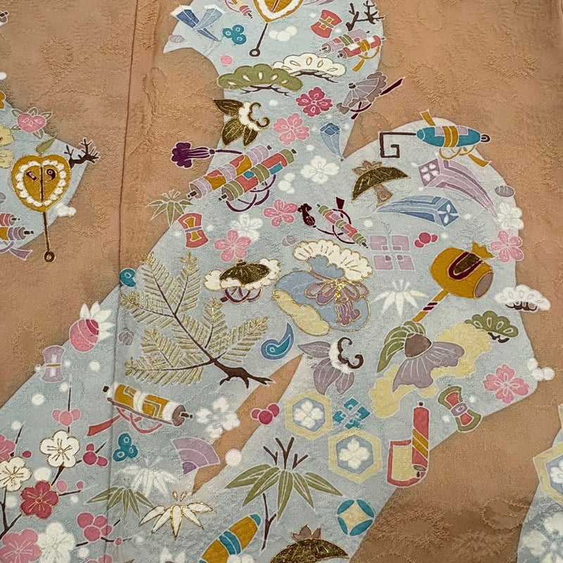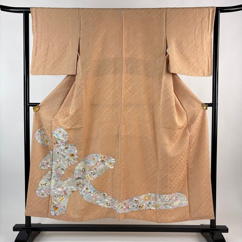 【着物ランク】秀品 【素材】正絹 【身丈】約152.5cm 【裄丈】約62.5cm 【袖丈】約48cm 【袖幅】約32.5cm 【前幅】約24cm 【後幅】約30.5cm 【サイズ】S 【着物仕立て】袷 【着用時期】10~5月 【状態ランク】ランクB 【着物着用シーン】披露宴、パーティー、式典、食事会、お茶会、正月