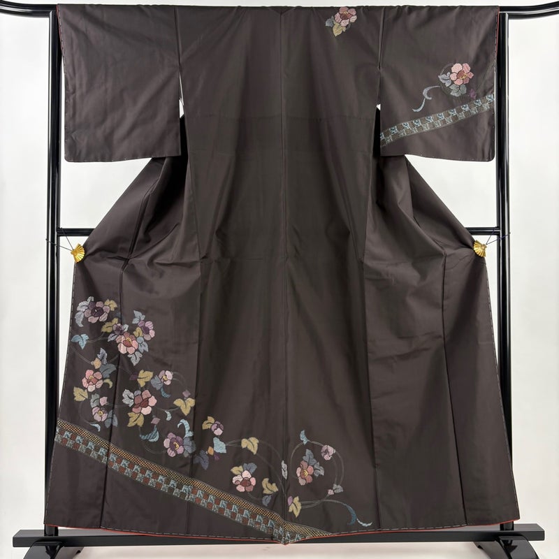 【付下げ】 茶系 焦茶色 名品 B 約150cm~約159cm 裄丈63cm-64cm (M)size 袖丈49cm 9990-29990 二万以下