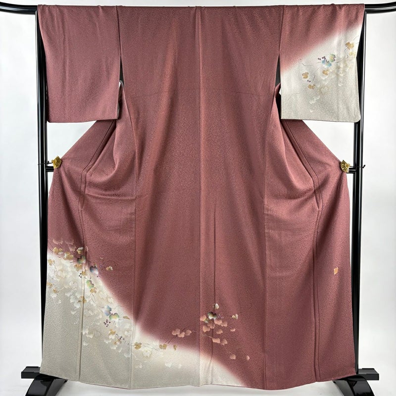 【付下げ】 赤系 小豆色 秀品 B 約160cm~約169cm 裄丈67cm-68cm (M)size 袖丈49cm 4000-7980 二万以下