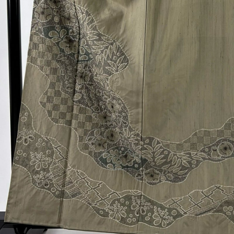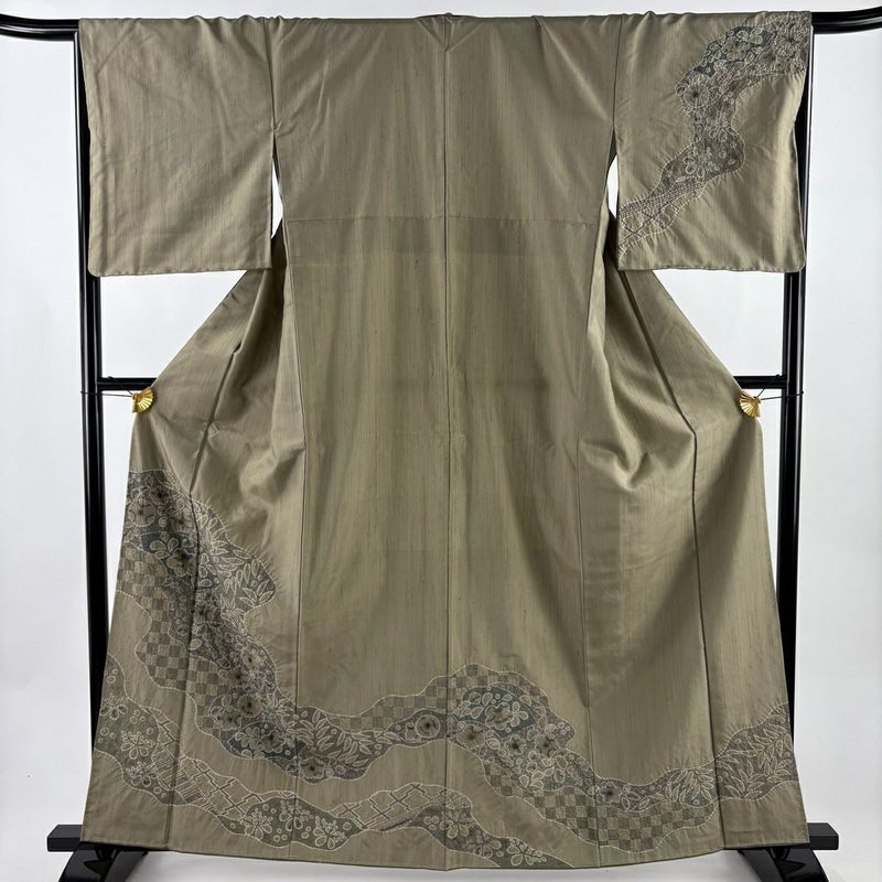 【付下げ】 灰色系 灰緑 名品 A 約160cm~約169cm 裄丈66cm (M)size 袖丈48cm 9990-29990 美品 二万以下