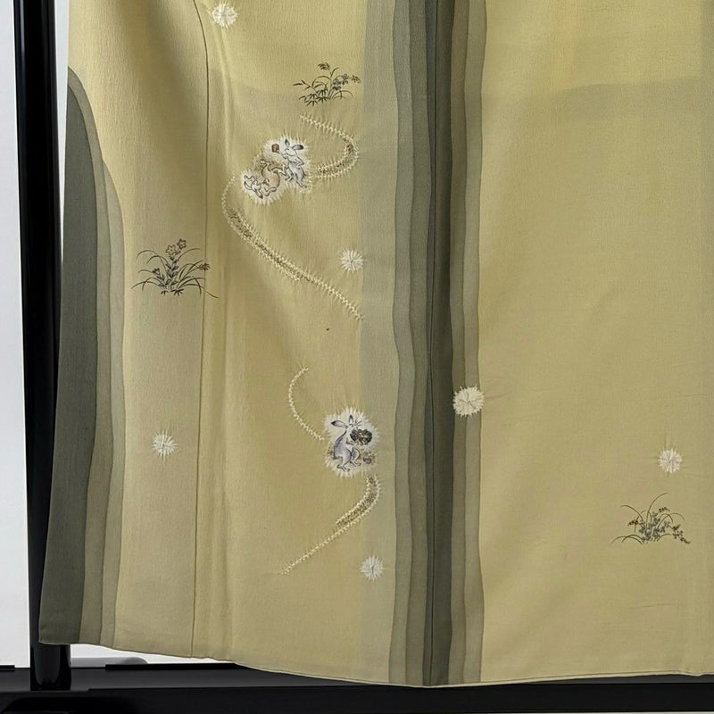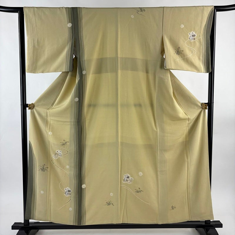 【付下げ】 黄色系 黄土色 名品 B 約150cm~約159cm 裄丈63cm-64cm (M)size 袖丈46cm以下 9990-29990 二万以下