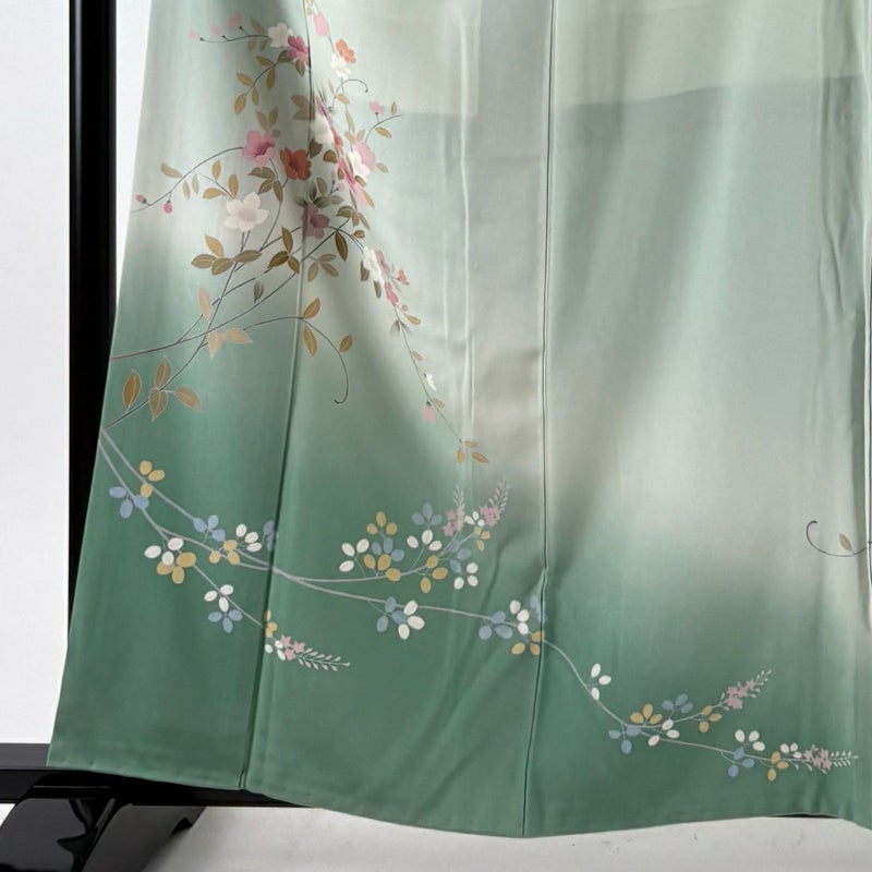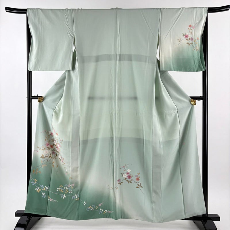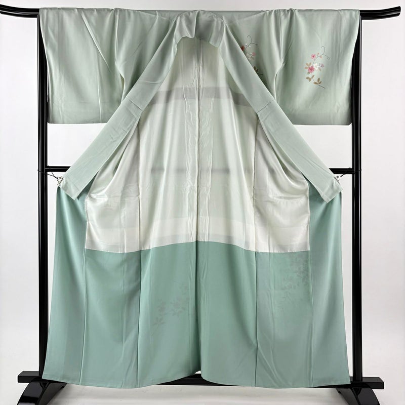 【付下げ】 緑系 薄緑 秀品 B 約150cm~約159cm 裄丈66cm (M)size 袖丈48cm 4000-7980 二万以下
