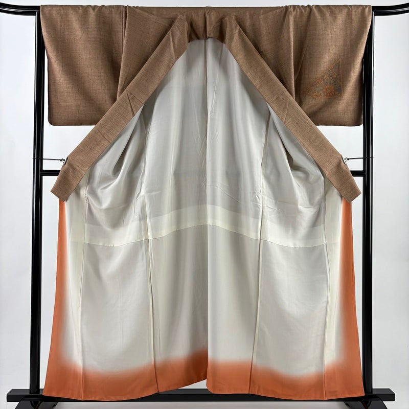 【付下げ】 茶系 茶色 秀品 A 約150cm~約159cm 裄丈66cm (M)size 袖丈49cm 7990-9980 美品 二万以下