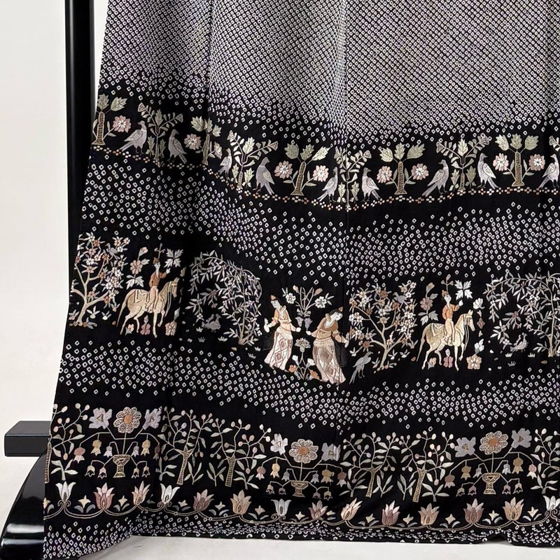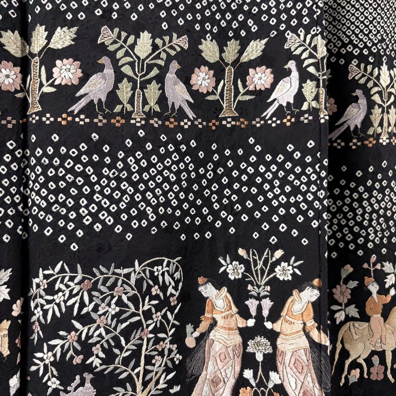 【着物ランク】名品 【素材】正絹 【身丈】約170cm 【裄丈】約68cm 【袖丈】約48cm 【袖幅】約35cm 【前幅】約25.5cm 【後幅】約32cm 【サイズ】L 【着物仕立て】袷 【着用時期】10~5月 【状態ランク】ランクA 【着物着用シーン】披露宴、パーティー、式典、食事会、お茶会、正月
