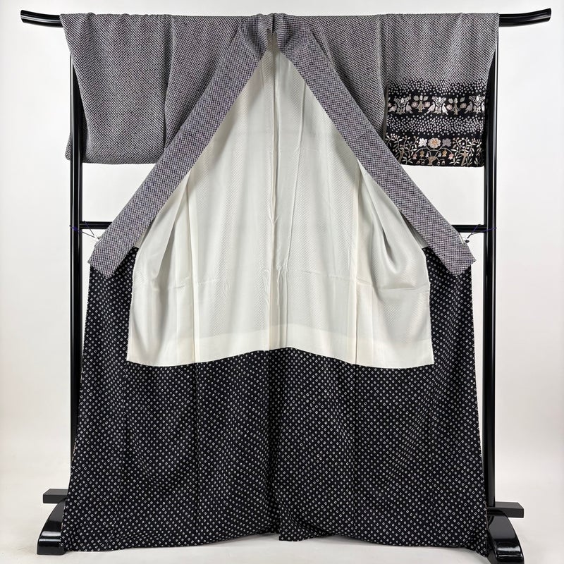 【付下げ】 灰色系 黒灰 名品 A 約170cm~約179cm 裄丈67cm-68cm (L)size 袖丈48cm 9990-29990 美品 二万以下