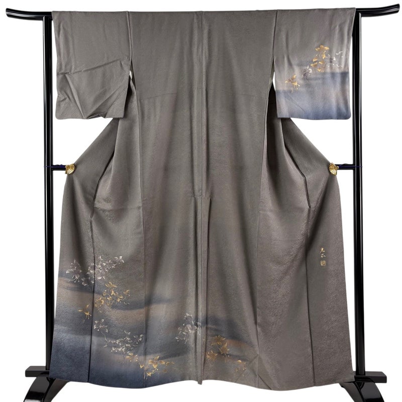 【付下げ】 灰色系 灰色 逸品 A 約160cm~約169cm 裄丈63cm-64cm (M)size 袖丈47cm 30000- 美品 五万以下
