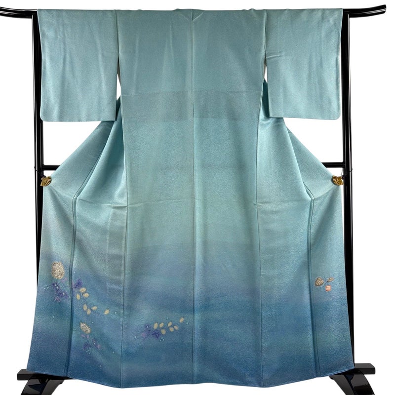 【付下げ】 青系 水色 逸品 B 約160cm~約169cm 裄丈63cm-64cm (M)size 袖丈48cm 30000- 五万以上