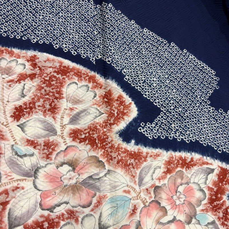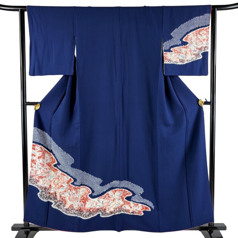 【付下げ】 青系 紺色 秀品 B 約160cm~約169cm 裄丈62cm以下 (S)size 袖丈48cm 4000-7980 二万以下