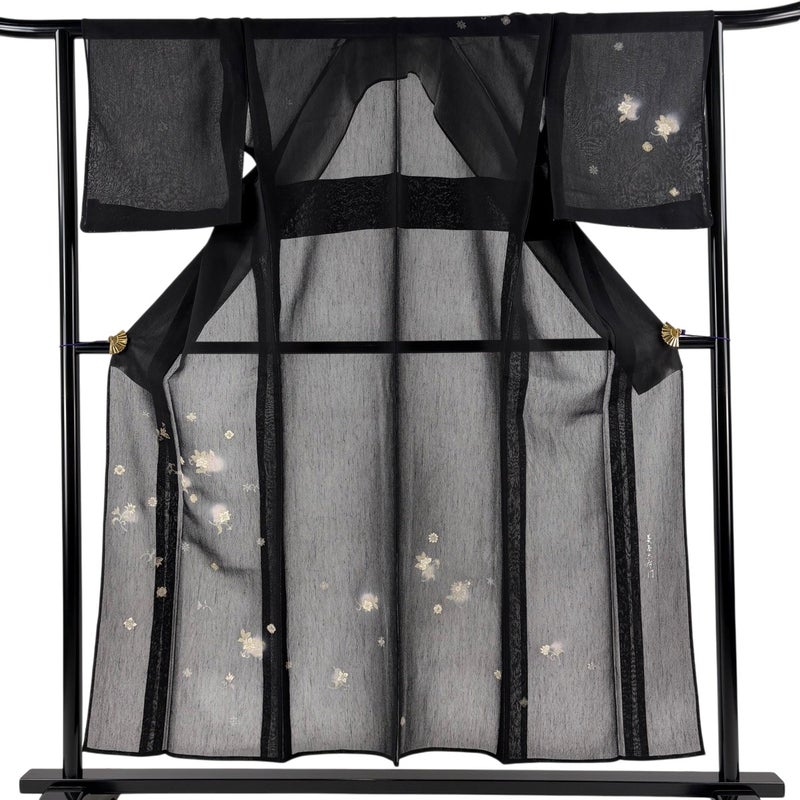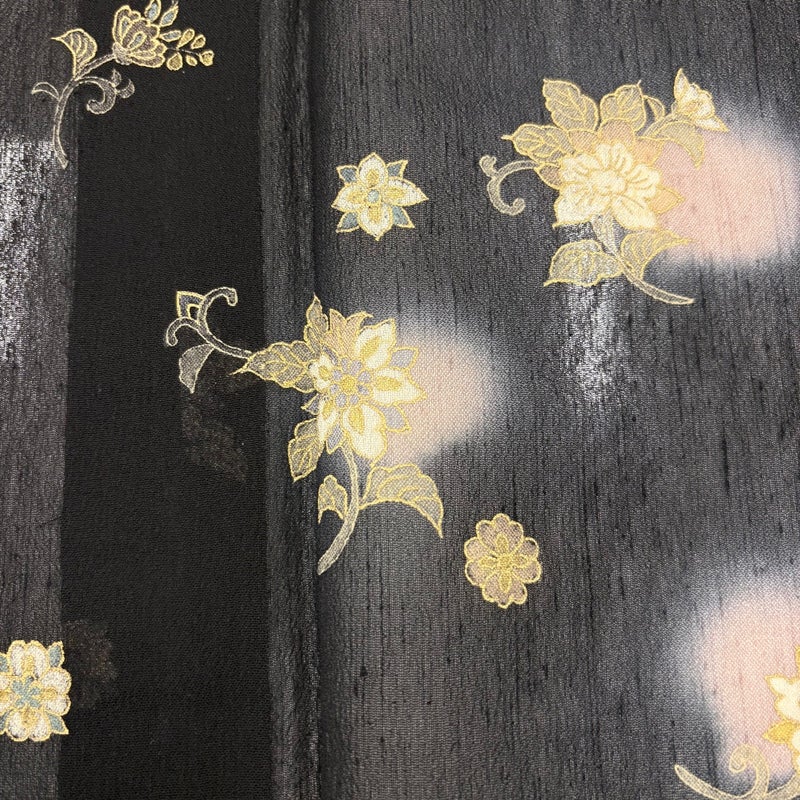 【付下げ】 黒系 黒 秀品 A 約150cm~約159cm 裄丈63cm-64cm (S)size 袖丈46cm以下 9990-29990 美品 二万以下