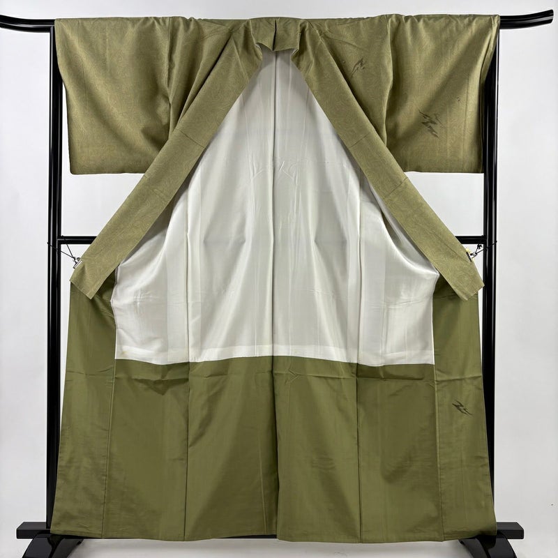 【付下げ】 緑系 鶯色 名品 C 約160cm~約169cm 裄丈66cm (M)size 袖丈48cm 9990-29990 二万以下