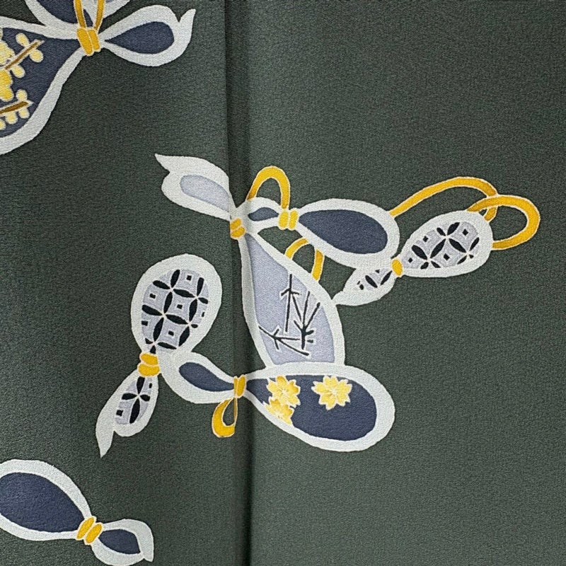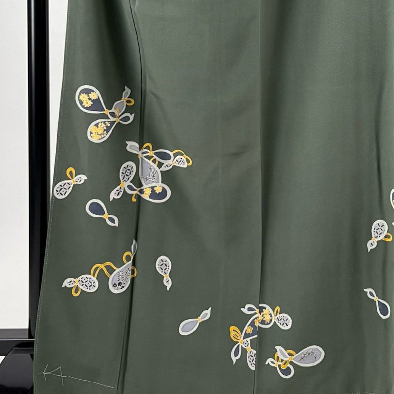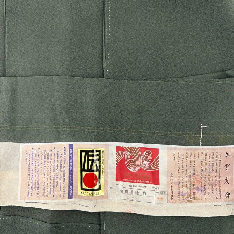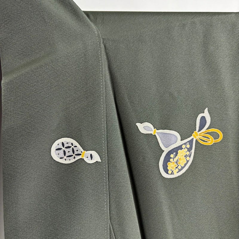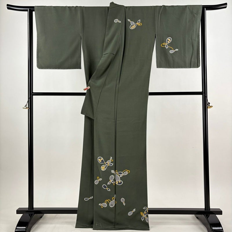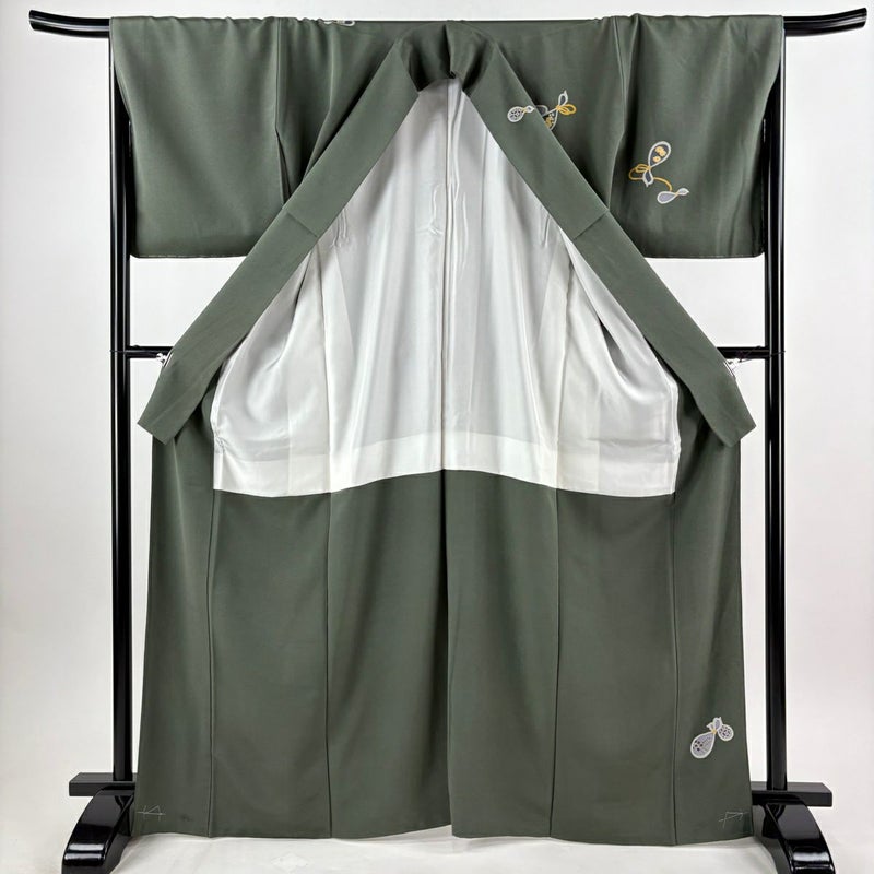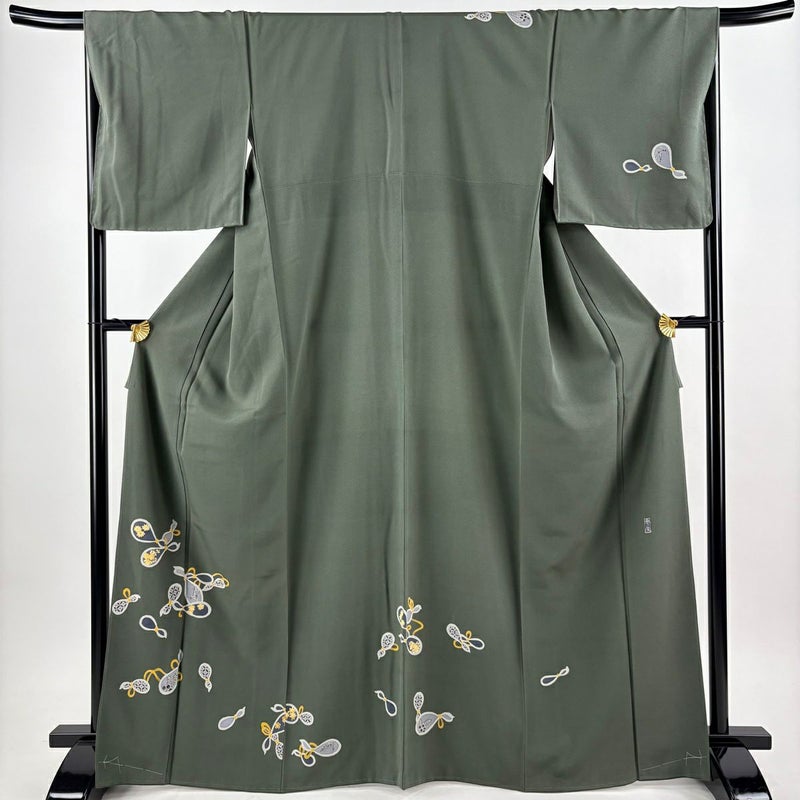 【付下げ】 灰色系 灰緑 逸品 B 約160cm~約169cm 裄丈67cm-68cm (L)size 袖丈49cm 30000- 五万以下