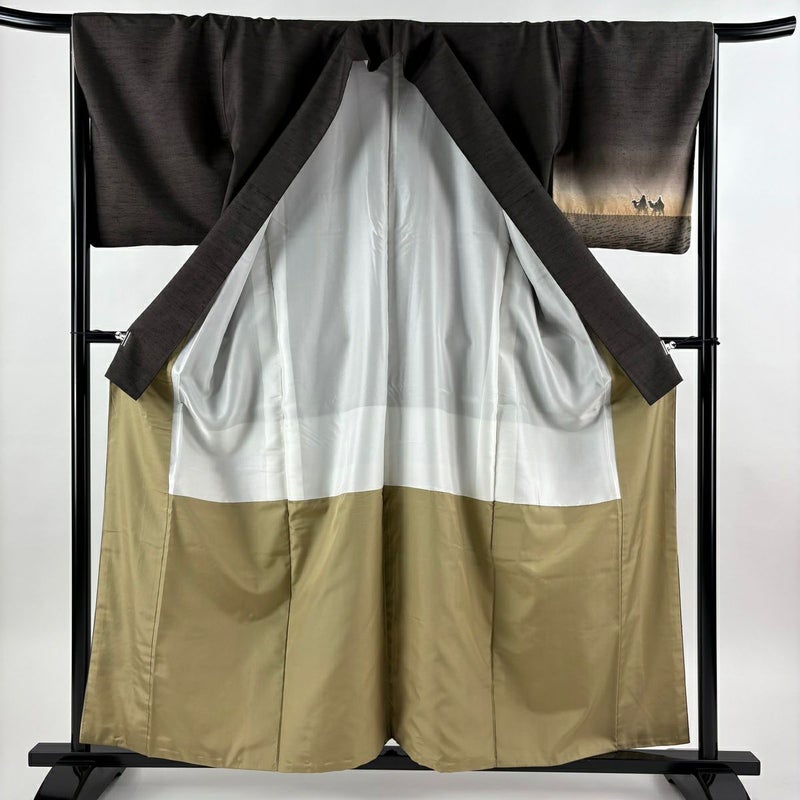 【付下げ】 茶系 焦茶色 逸品 A 約150cm~約159cm 裄丈66cm (M)size 袖丈49cm 30000- 美品 五万以下