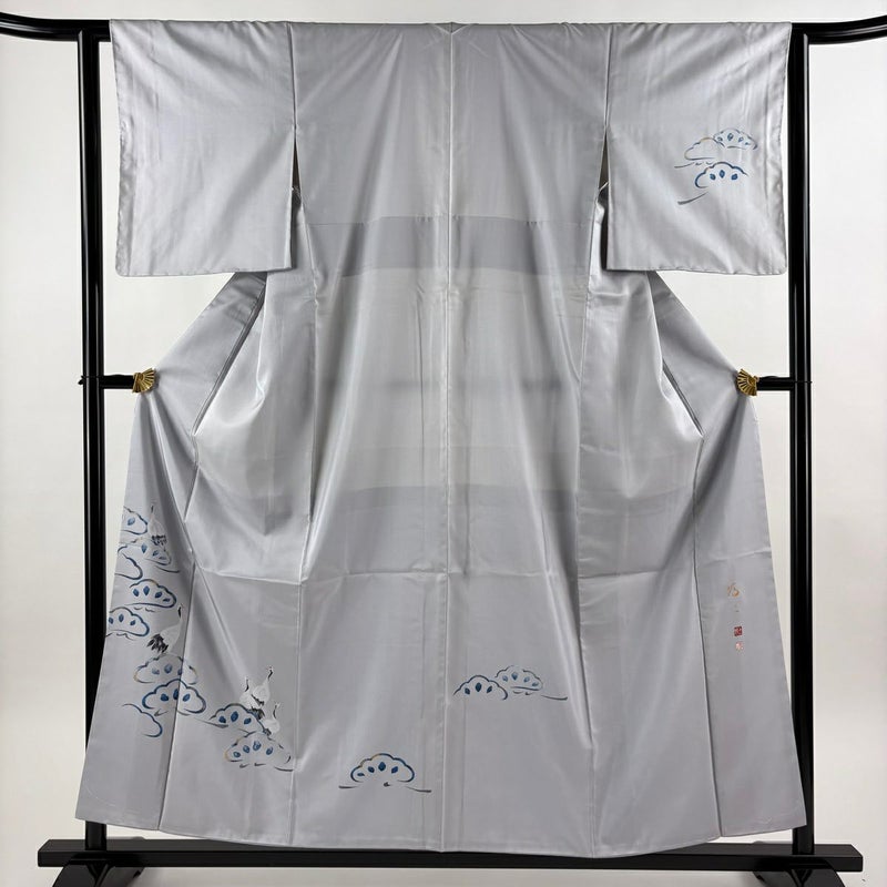 【付下げ】 灰色系 灰色 逸品 B 約150cm~約159cm 裄丈62cm以下 (S)size 袖丈49cm 30000- 五万以下