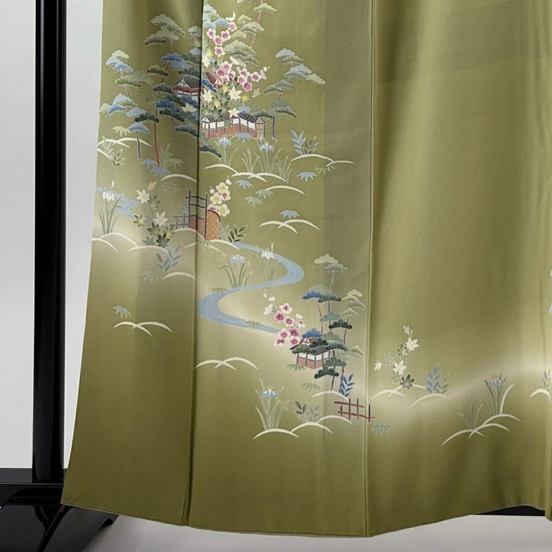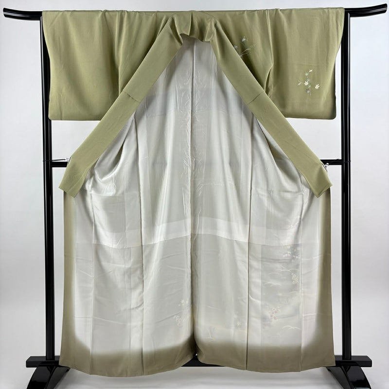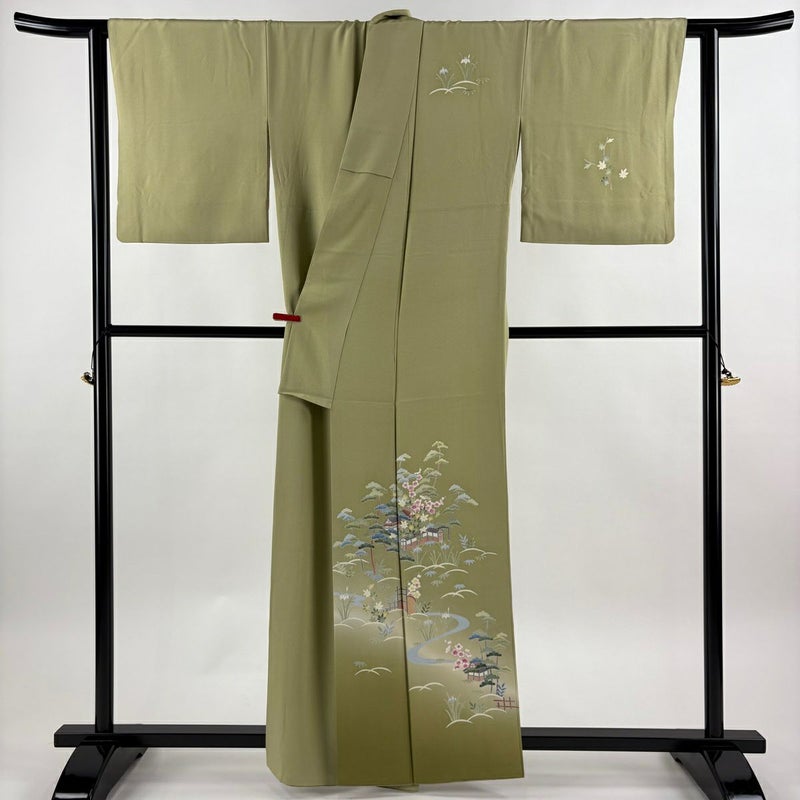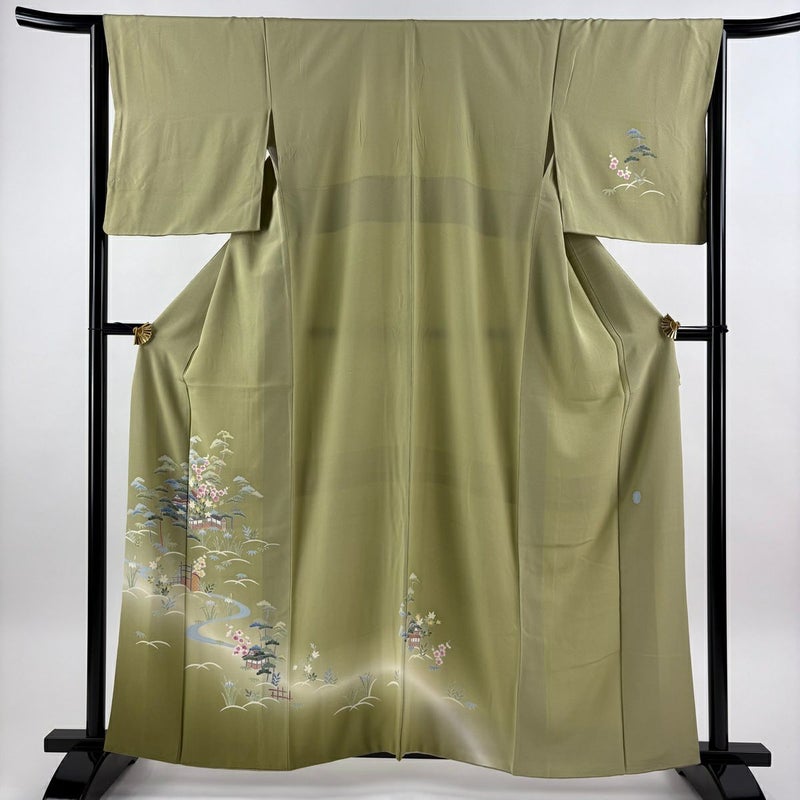 【付下げ】 緑系 抹茶色 逸品 B 約150cm~約159cm 裄丈66cm (M)size 袖丈48cm 30000- 五万以下