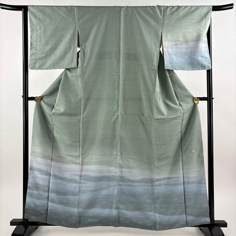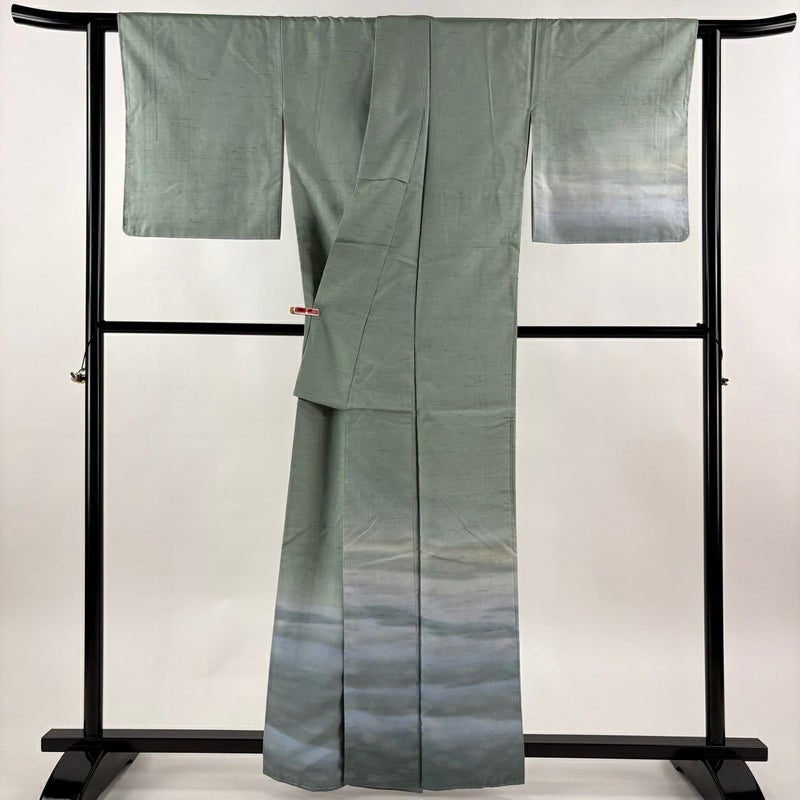 【付下げ】 灰色系 灰緑 逸品 A 約160cm~約169cm 裄丈65cm (M)size 袖丈49cm 30000- 美品 五万以下