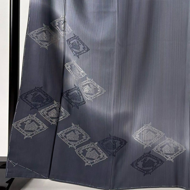 【付下げ】 灰色系 青灰色 逸品 A 約160cm~約169cm 裄丈66cm (M)size 袖丈48cm 30000- 美品 五万以下