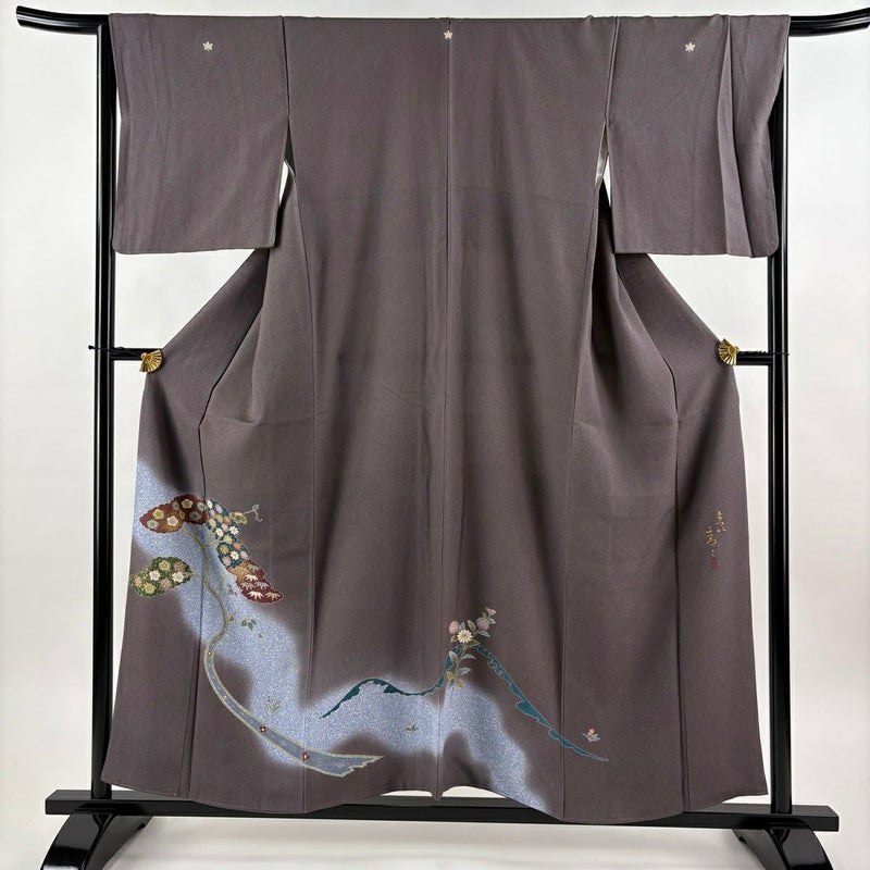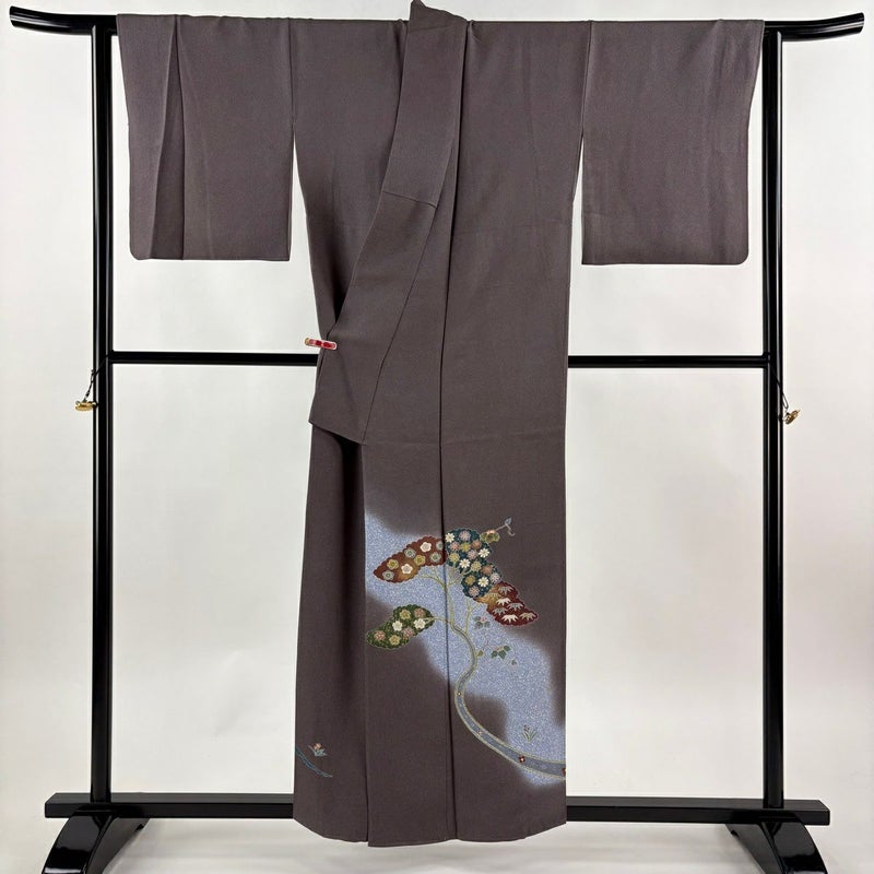【付下げ】 茶系 茶紫 逸品 B 約150cm~約159cm 裄丈66cm (M)size 袖丈48cm 30000- 五万以下