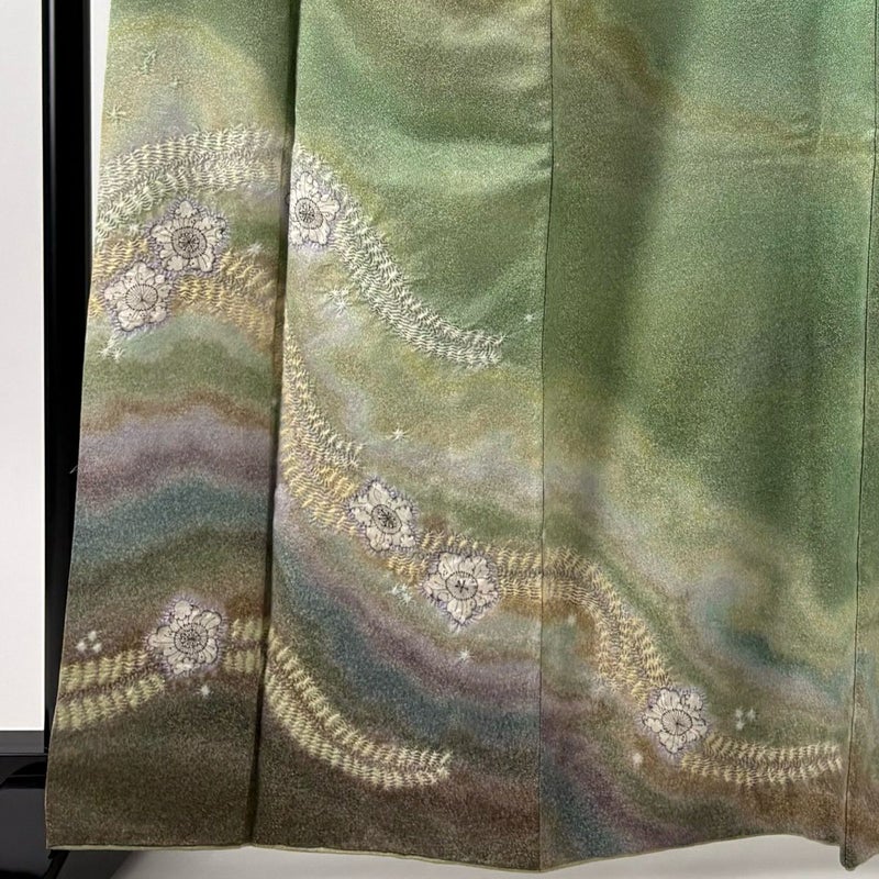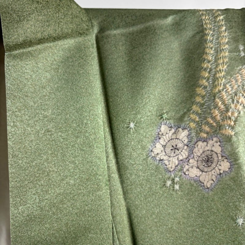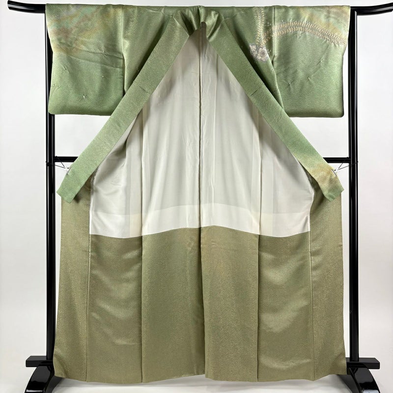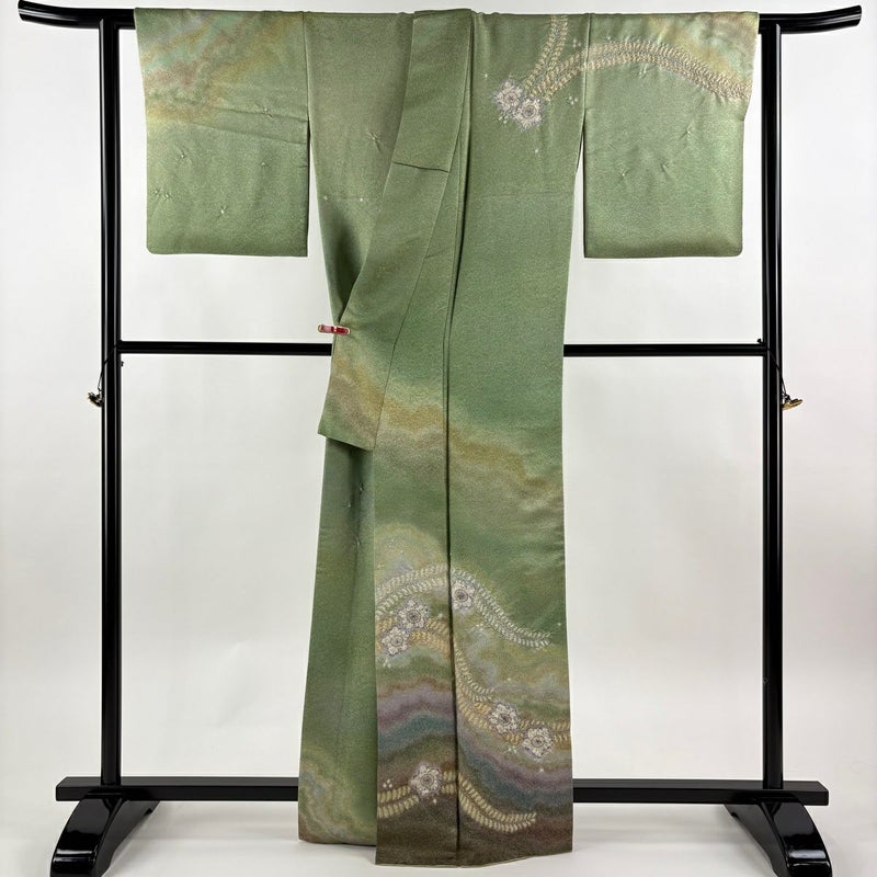 【付下げ】 緑系 よもぎ色 逸品 B 約160cm~約169cm 裄丈65cm (M)size 袖丈49cm 30000- 五万以上