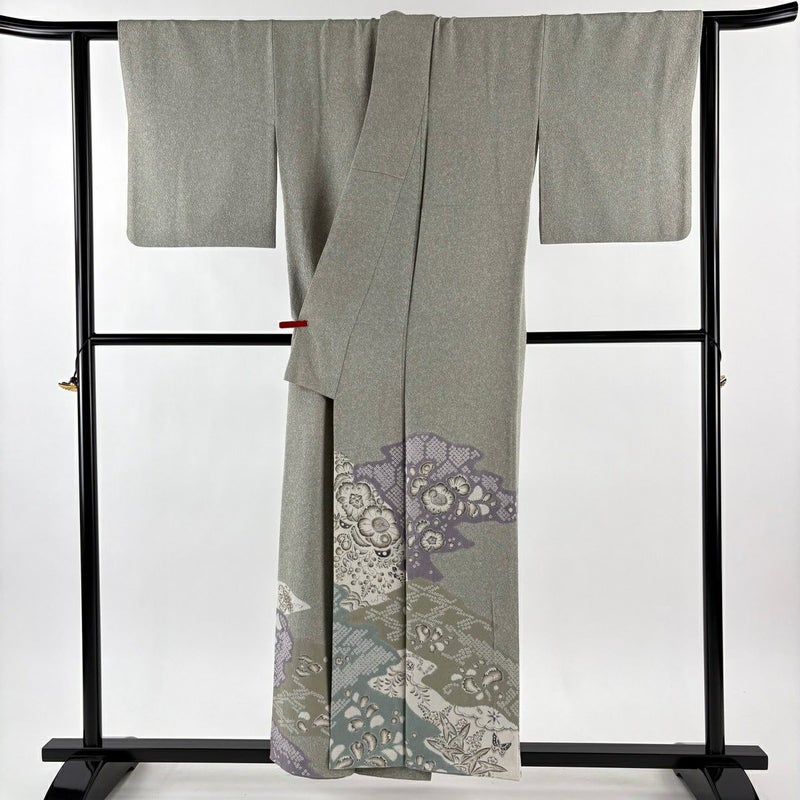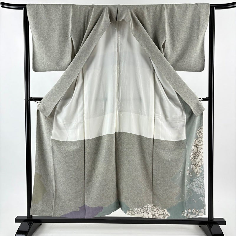 【付下げ】 灰色系 灰緑 逸品 C 約150cm~約159cm 裄丈63cm-64cm (S)size 袖丈48cm 9990-29990 五万以下