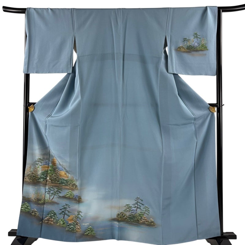 【付下げ】 青系 水色 優品 B 約160cm~約169cm 裄丈67cm-68cm (M)size 袖丈47cm -3980 二万以下