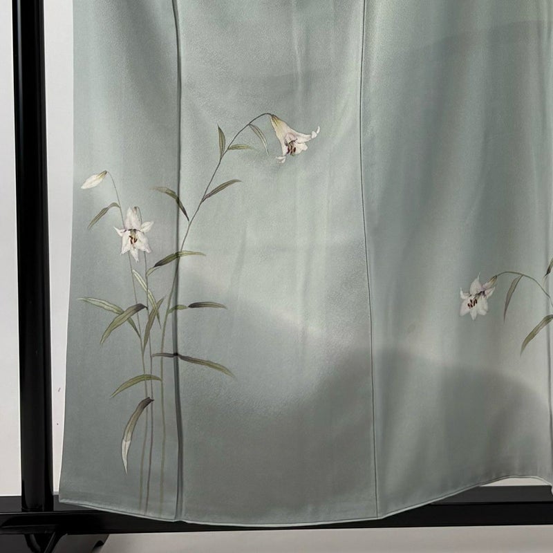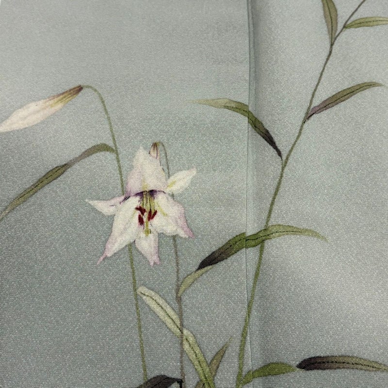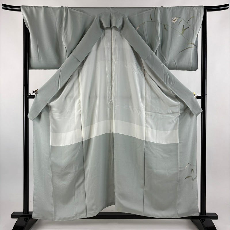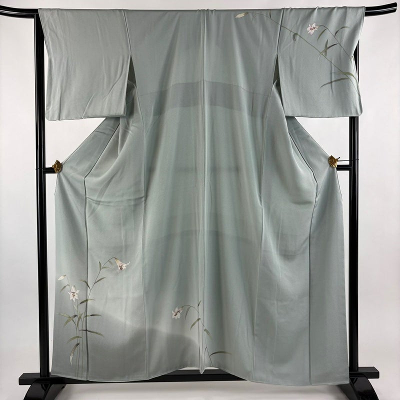【付下げ】 灰色系 灰緑 秀品 B 約150cm~約159cm 裄丈67cm-68cm (M)size 袖丈47cm 4000-7980 二万以下