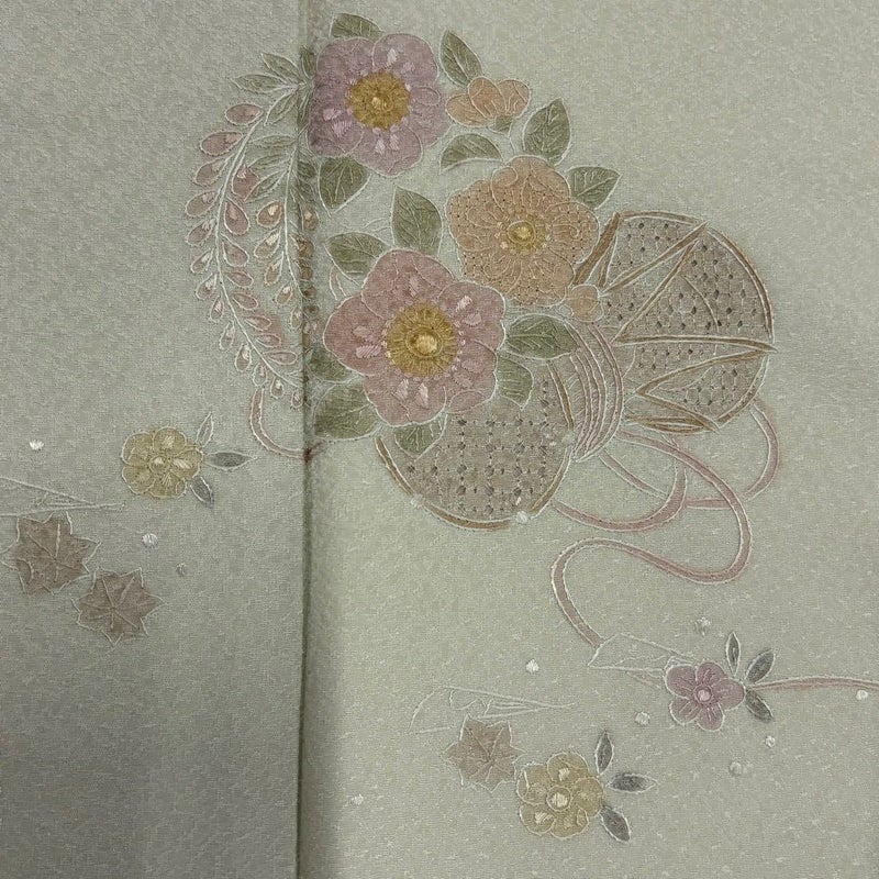 【付下げ】 灰色系 灰緑 秀品 B 約160cm~約169cm 裄丈65cm (M)size 袖丈48cm 4000-7980 二万以下