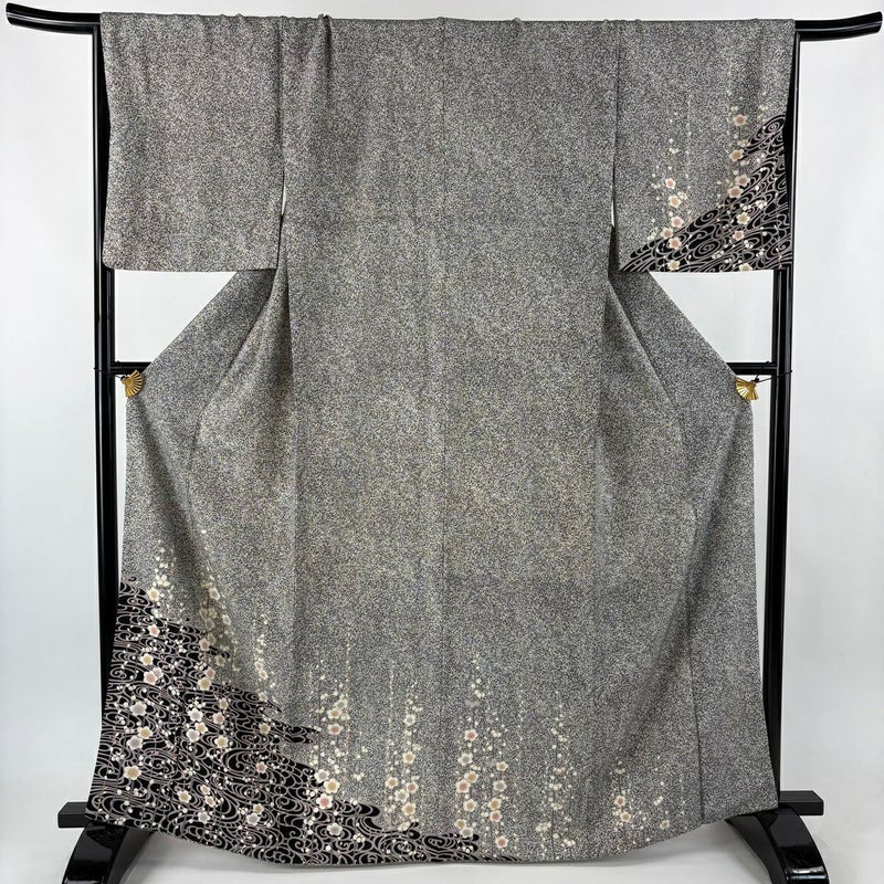 【付下げ】 灰色系 黒灰 秀品 B 約160cm~約169cm 裄丈67cm-68cm (L)size 袖丈49cm 4000-7980 二万以下