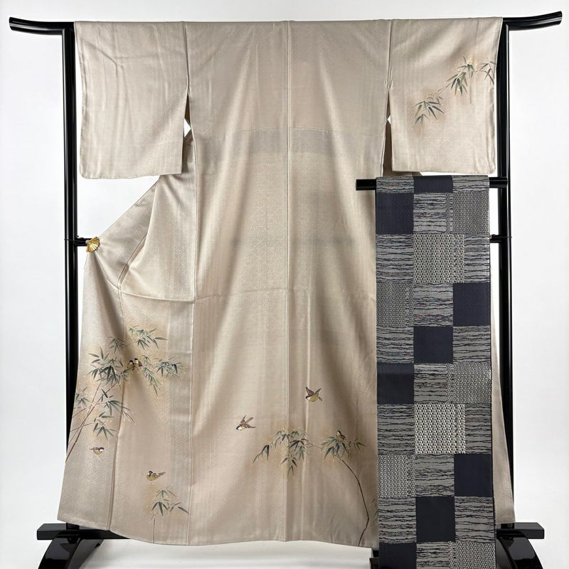 【着物ランク】秀品 【素材】正絹 【身丈】約160.5cm 【裄丈】約64cm 【袖丈】約48.5cm 【袖幅】約32.5cm 【前幅】約24.5cm 【後幅】約30cm 【サイズ】M 【着物仕立て】袷 【着用時期】10~5月 【帯丈2】約434cm 【帯幅2】約30.5cm 【状態ランク】ランクB 【着物着用シーン】披露宴、パーティー、式典、食事会、お茶会、正月