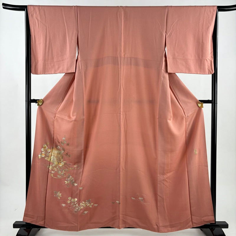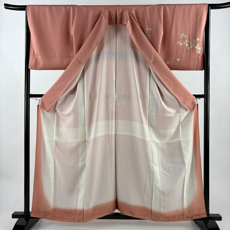 【付下げ】 赤系 サーモンピンク 名品 C 約160cm~約169cm 裄丈66cm (M)size 袖丈48cm 9990-29990 二万以下