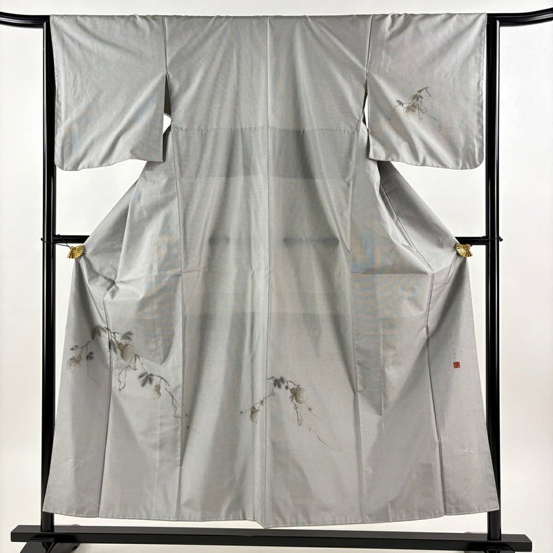 【付下げ】 灰色系 灰色 逸品 A 約150cm~約159cm 裄丈63cm-64cm (M)size 袖丈48cm 30000- 美品 五万以下