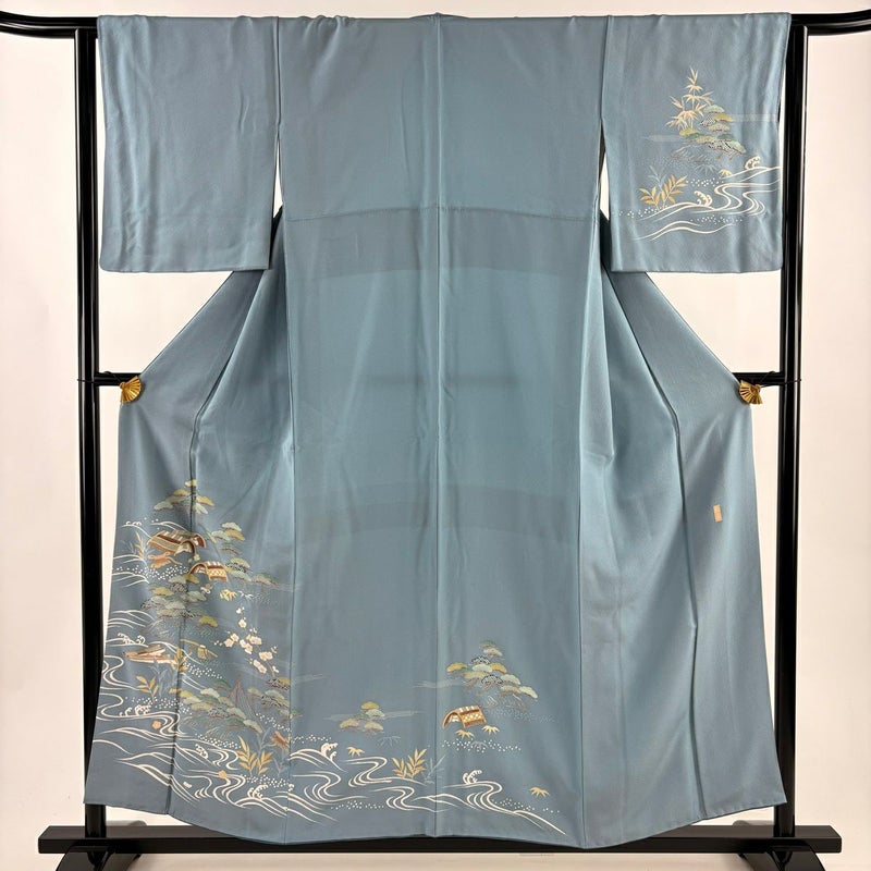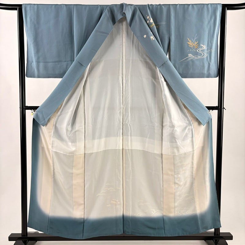 【付下げ】 灰色系 青灰色 秀品 B 約150cm~約159cm 裄丈63cm-64cm (S)size 袖丈48cm 4000-7980 二万以下