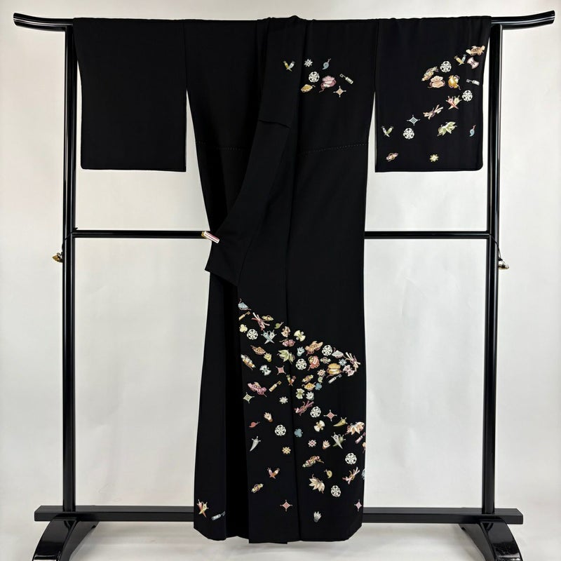 【付下げ】 黒系 黒 逸品 B 約150cm~約159cm 裄丈65cm (M)size 袖丈47cm 30000- 五万以下