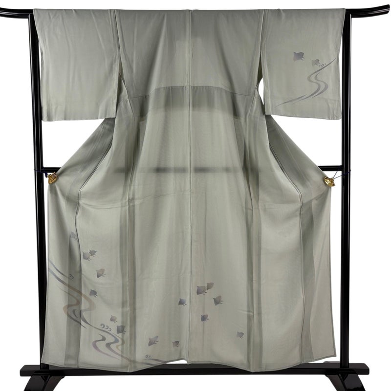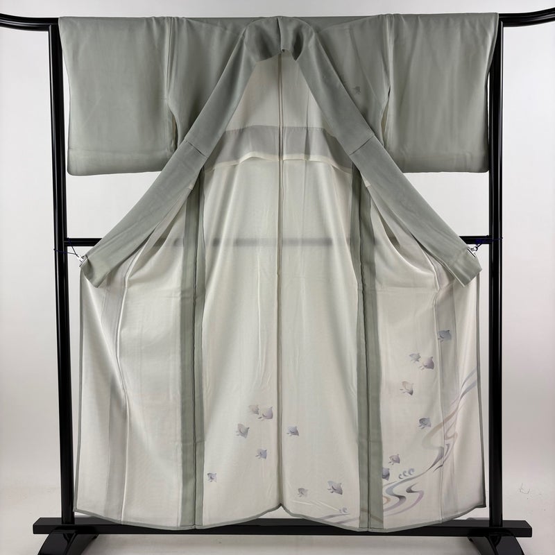 【付下げ】 灰色系 灰緑 名品 B 約150cm~約159cm 裄丈63cm-64cm (M)size 袖丈47cm 9990-29990 五万以下