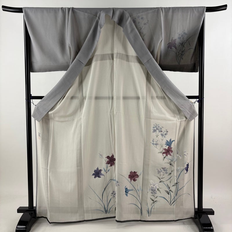 【付下げ】 灰色系 灰色 名品 A 約160cm~約169cm 裄丈66cm (M)size 袖丈48cm 9990-29990 美品 五万以下
