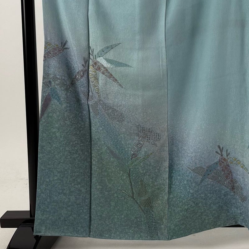 【付下げ】 青系 水色 秀品 C 約160cm~約169cm 裄丈63cm-64cm (M)size 袖丈48cm 4000-7980 二万以下