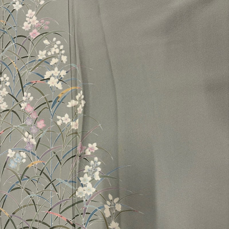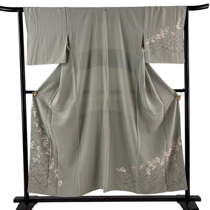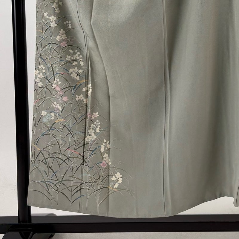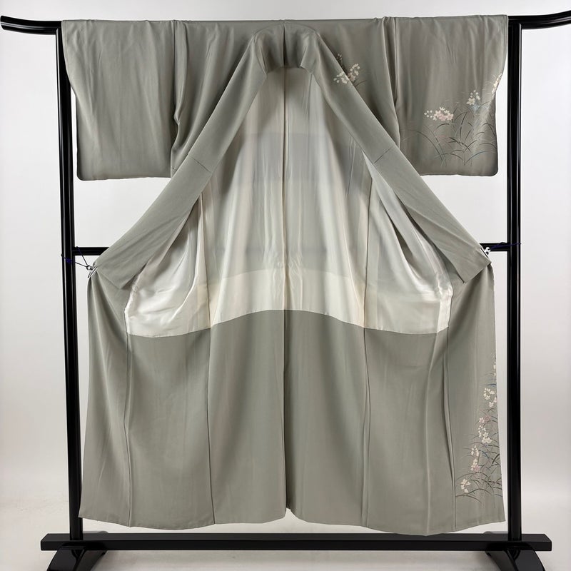 【付下げ】 灰色系 灰緑 秀品 B 約150cm~約159cm 裄丈63cm-64cm (M)size 袖丈46cm以下 4000-7980 二万以下