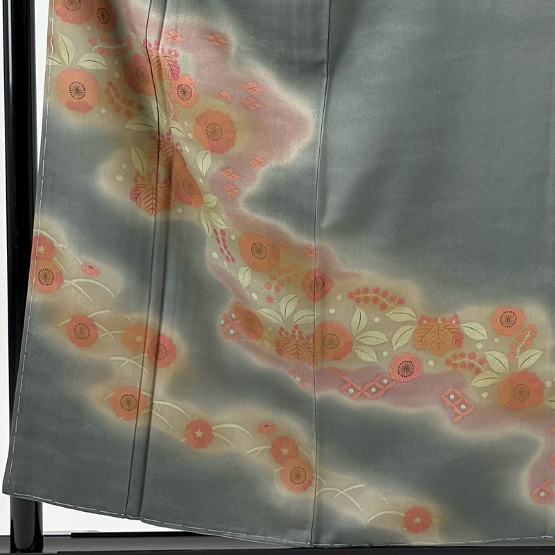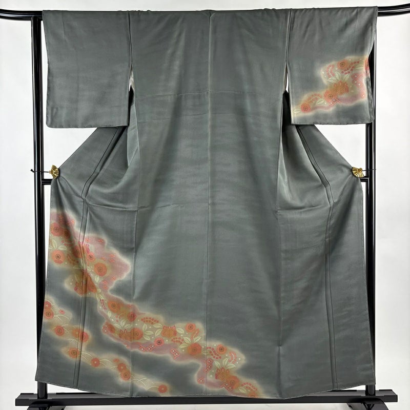 【付下げ】 灰色系 灰緑 秀品 B 約150cm~約159cm 裄丈65cm (M)size 袖丈47cm 4000-7980 二万以下