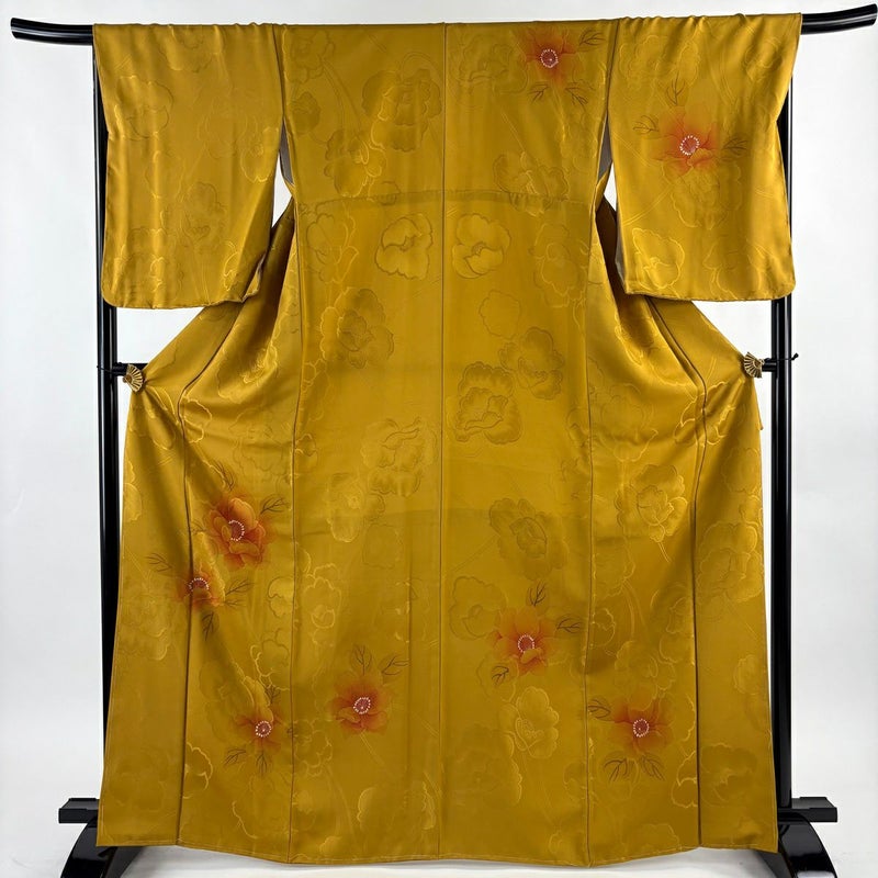【付下げ】 黄色系 山吹色 秀品 B 約160cm~約169cm 裄丈67cm-68cm (L)size 袖丈50cm-60cm 4000-7980 二万以下