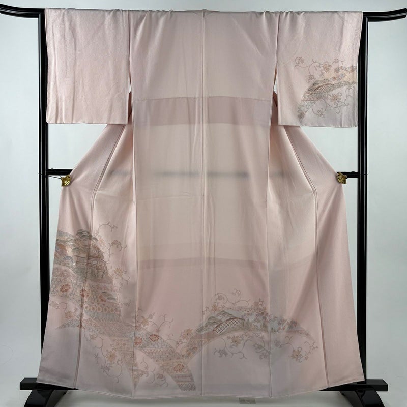 【付下げ】 赤系 薄ピンク 秀品 A 約160cm~約169cm 裄丈66cm (M)size 袖丈48cm 7990-9980 美品 二万以下