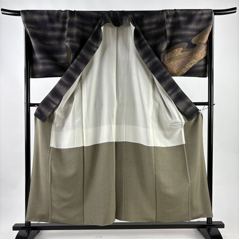 【付下げ】 灰色系 黒灰 秀品 A 約150cm~約159cm 裄丈67cm-68cm (L)size 袖丈48cm 7990-9980 美品 二万以下