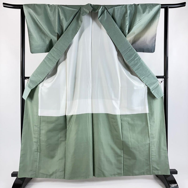 【付下げ】 灰色系 灰緑 秀品 A 約160cm~約169cm 裄丈62cm以下 (S)size 袖丈46cm以下 7990-9980 美品 二万以下