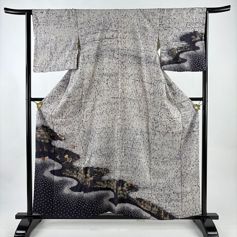 【着物ランク】秀品 【素材】正絹 【身丈】約158.5cm 【裄丈】約64cm 【袖丈】約49cm 【袖幅】約35cm 【前幅】約24cm 【後幅】約30cm 【サイズ】M 【着物仕立て】袷 【着用時期】10~5月 【状態ランク】ランクB 【着物着用シーン】披露宴、パーティー、式典、食事会、お茶会、正月