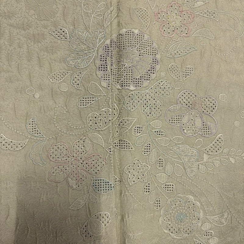 合わせる帯の色柄により、お召しいただく席を選べる付下げです。 帯により印象を変える事の出来る印象のお着物は、様々に活躍してくれることでしょう。 ※身丈・裄丈の縫込みの長さは測っておりません。一つ紋の縫い紋です。 表地所々にヤケ、後身頃の背中付近に薄いシミがございます。 衿裏所々に点シミがございます。 リユース品としては良い状態で、まだまだご活用頂けると思われます。 ※なお、厳しく商品の状態確認を行っておりますが、記載の汚れ以外にも見落とし箇所がある可能性がある旨ご了承いただけますと幸いです。 沢山の商品の中からご覧いただき誠にありがとうございます。 ※保管によるにおい移りがございます。