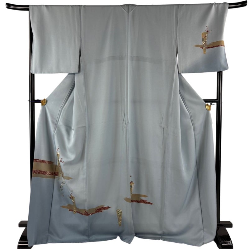 【付下げ】 灰色系 青灰色 秀品 B 約170cm~約179cm 裄丈67cm-68cm (L)size 袖丈49cm 4000-7980 二万以下