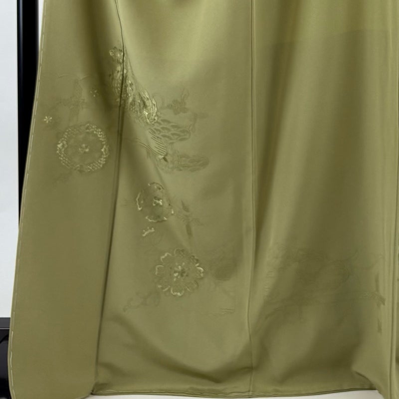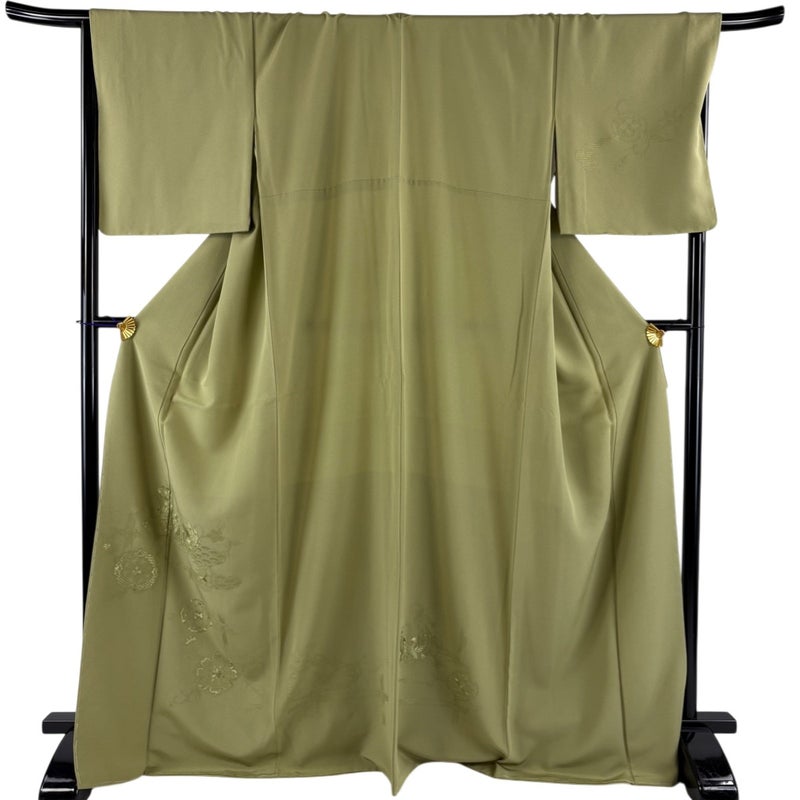 【付下げ】 緑系 よもぎ色 秀品 A 約170cm~約179cm 裄丈69cm以上 (L)size 袖丈49cm 7990-9980 美品 二万以下