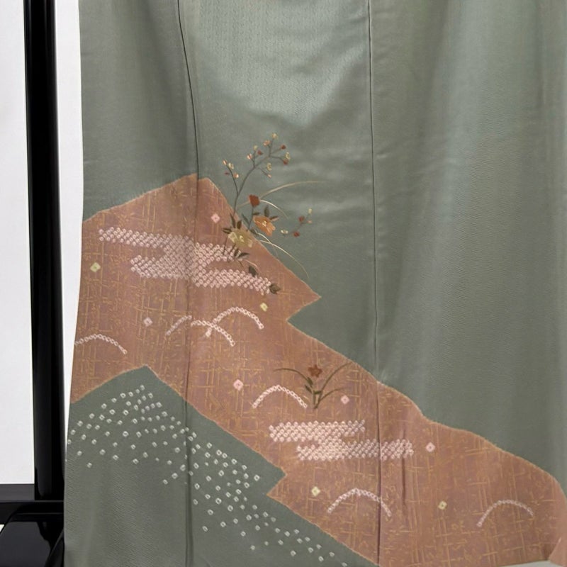 【付下げ】 灰色系 灰緑 秀品 B 約160cm~約169cm 裄丈63cm-64cm (M)size 袖丈46cm以下 4000-7980 二万以下